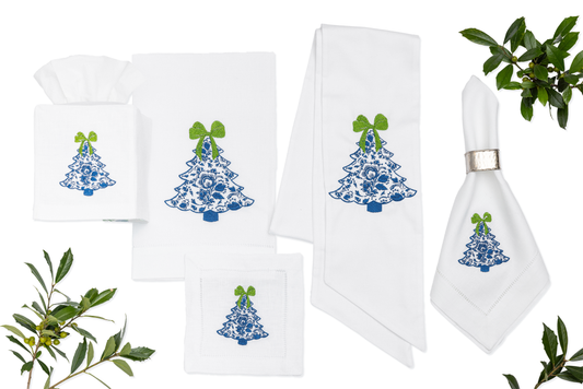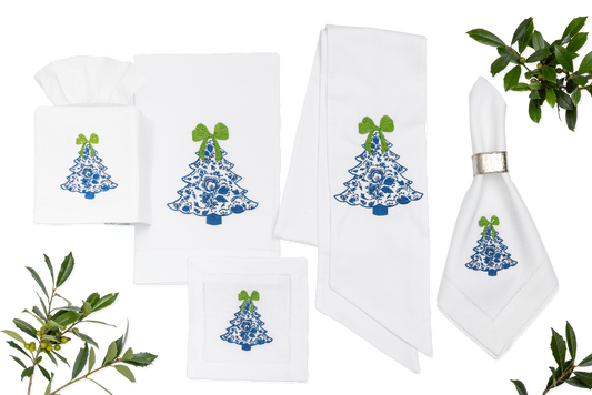 Embroidered Chinoiserie Christmas Tree Cocktail Napkins Set