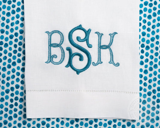 Embroidered Hand Towel with Linen or Cotton Formal Monogram