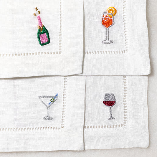 Embroidered Cocktail Napkins with Cocktail Emoji