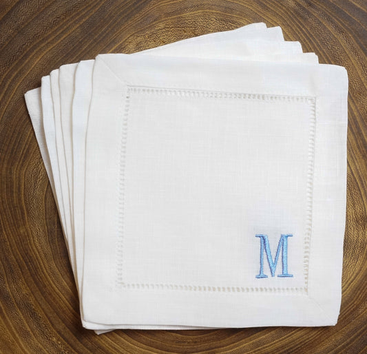 Embroidered Cocktail Napkins with Single Initial Monogram